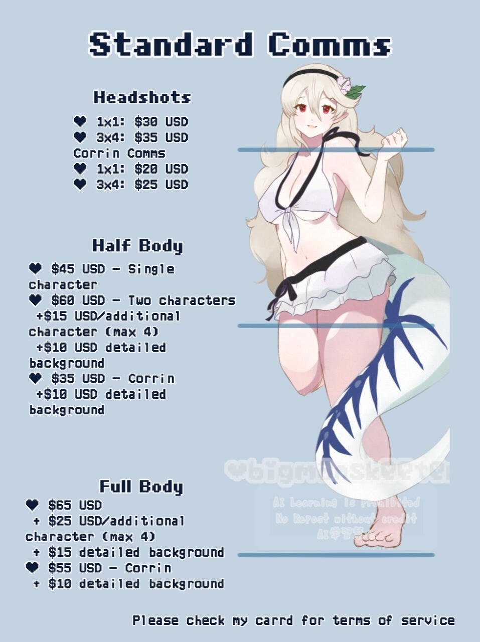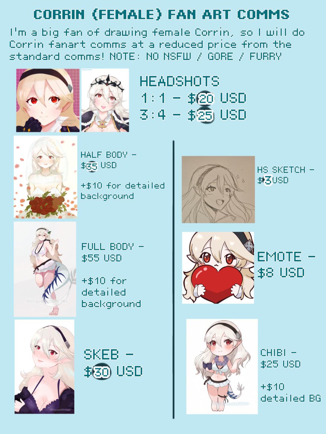 CORRIN COMMS ON SALE TIL NOVEMBER 1, 2025PLEASE MESSAGE ME ON EITHER TWITTER/X, BLUESKY, OR KOFI BEFORE YOU PLACE AN ORDER! AND PLEASE READ THE TERMS OF SERVICE BEFORE YOU COMMISSION ME. FAILURE TO COMPLY WILL RESULT IN A BLACKLIST!